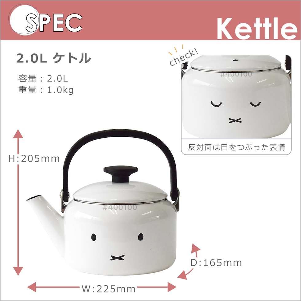 ・純白のホーローにミッフィーのお顔が描かれたチャーミングなシリーズ ・普段使いにちょうど良い2.0Lケトル |