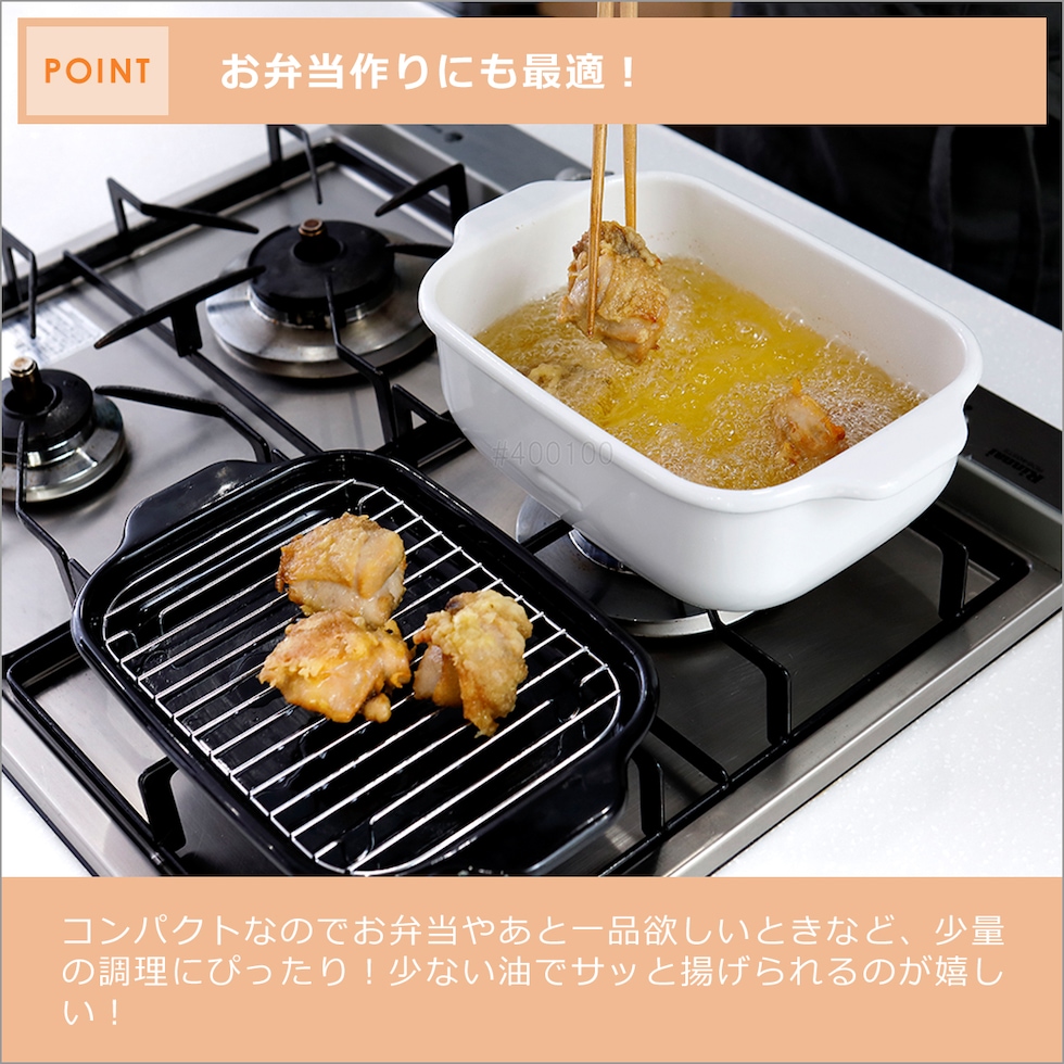 ・油切り用のスノコ網、オーブン皿としても使えるバット付