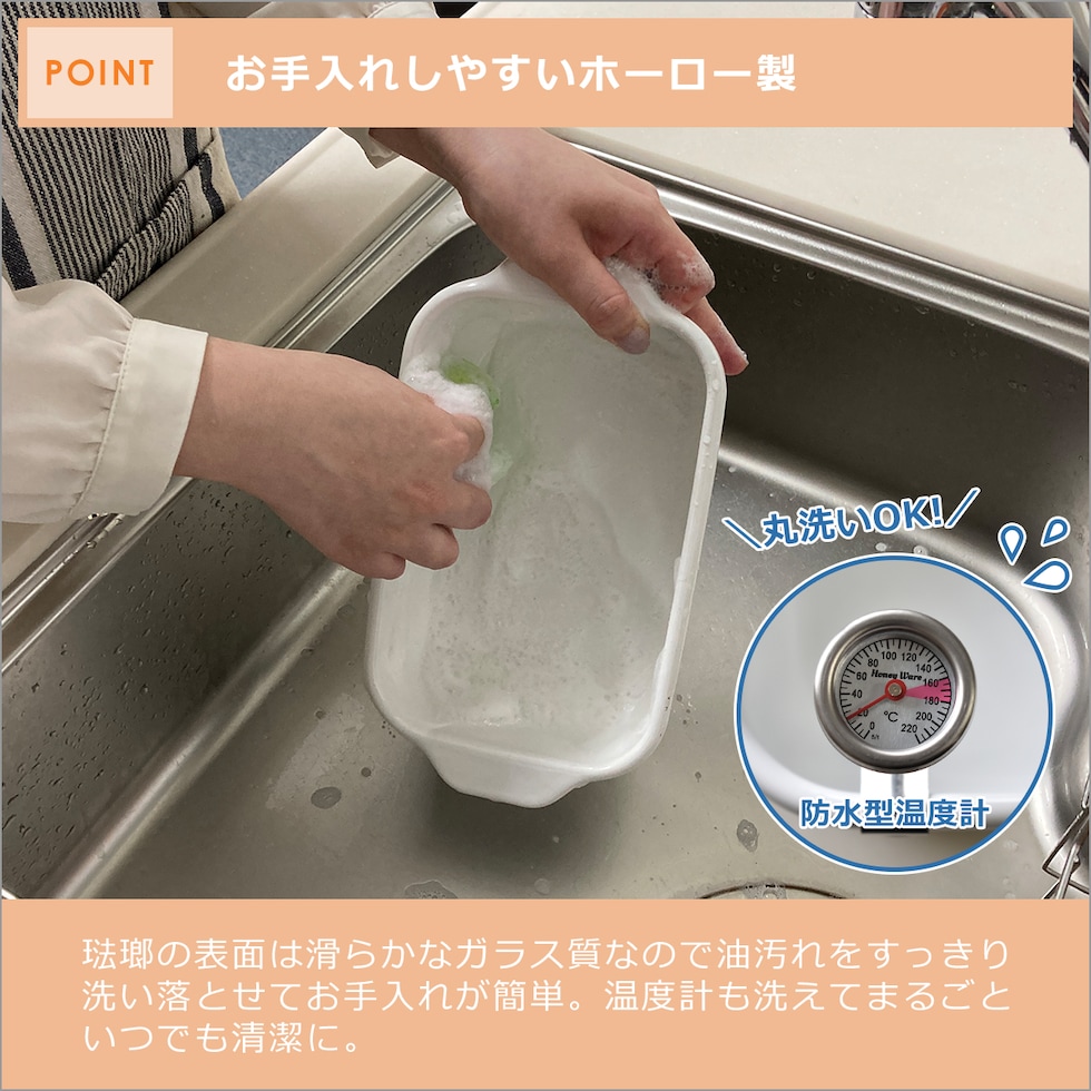 ・油汚れもすっきりと洗い落とせる琺瑯製
