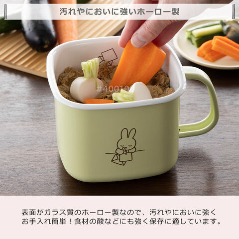 富士ホーロー ミッフィー ミッフィーパステル 角型みそポット ペールグリーン MFP-KP.PG みそポット 密閉蓋付き ストックポット 保存容器 FUJIHORO ほうろう【北海道・沖縄は990円加算】fuj518-433