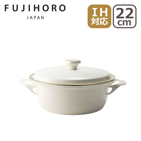 富士ホーロー EXシリーズ 22cmキャセロール アイボリー EX-22W.IV 両手鍋 レシピ集付き 軽量 ほうろう 琺瑯 IH対応 直火(ガス火)対応 FUJIHORO 【北海道・沖縄は990円加算】 fuj523-102