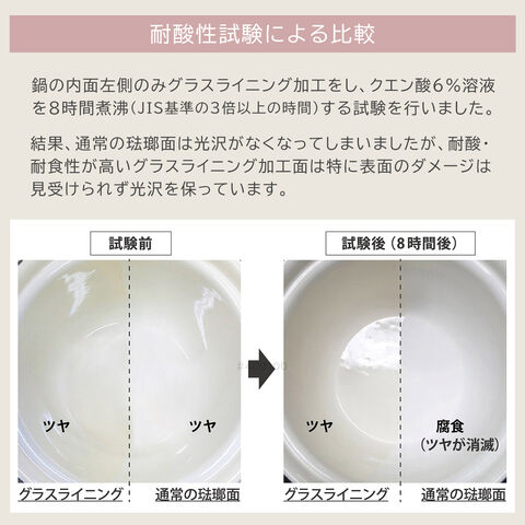 ・ホーローはガラス質なので、ぶつけたり、落としたりなどのショックを与えないようにご注意ください ・金属タワシ、磨き粉などのご使用は表面を傷つけますので、ご使用にはならないでください ・サビの発生を防ぐため、よく洗ってから乾燥させてください ・空だきはしないでください |