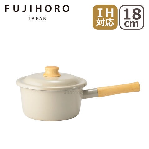 富士ホーロー コットンプラス 18cmソースパン グレージュ CTP-18S.GG ふた付き 蓋付き 片手鍋 目盛り入り ほうろう IH対応 直火(ガス火)対応 Cotton Pulus FUJIHORO【北海道・沖縄は990円加算】fuj615-3