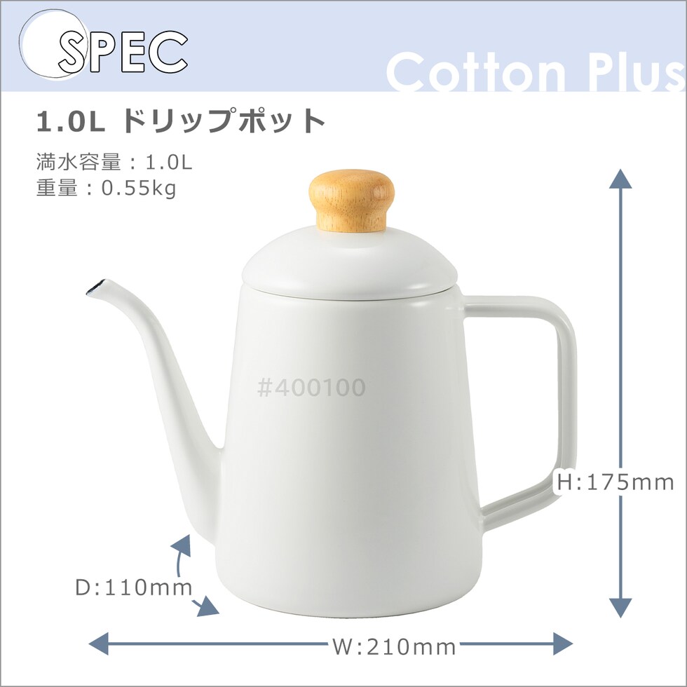 ・コットンシリーズに機能面がプラスされた『コットンプラスシリーズ』 ・細口ノズルにより、湯量をコントロールできるシンプルなドリップポット |