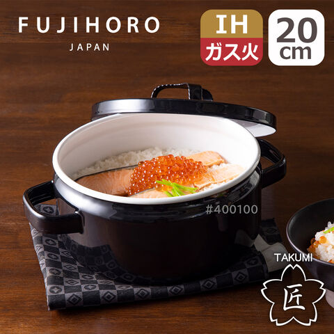 富士ホーロー 匠シリーズ 20cm 両手鍋 キャセロール TKM-20W.BK 鉄黒 IH対応 直火(ガス火)対応 蓋付き フタ付き 琺瑯 TAKUMI FUJIHORO 【北海道・沖縄は990円加算】 fuj622-c11