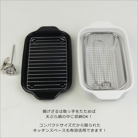 | 富士ホーロー 角型天ぷら鍋:スノコ網・バット・温度計(防水型・丸洗い可) |