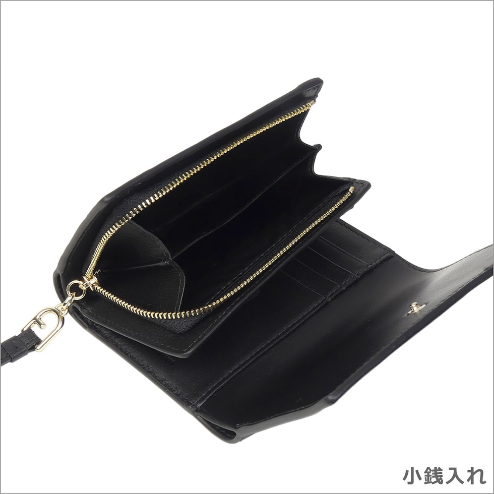 ・複数のカード入れ、収納を備えたエレガントな三つ折り財布 ・アーチロゴをアレンジしたジップタブがアクセント ・出し入れしやすいL字ファスナーの小銭入れ付き ・フラップ&スナップボタン開閉 ・カード入れ × 8 ・オープンポケット × 2 ・L字ファスナー付き小銭入れ × 1(仕切り付き) ・札入れ × 1 |