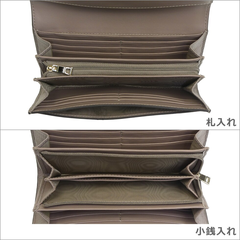・収納力に優れた長財布 ・パンチング加工のロゴモチーフが象徴的なデザイン ・フラップ&スナップボタン開閉 ・小銭入れ×1(仕切り×1、オープンポケット×1) ・札入れ×2、カード入れ×12、オープンポケット×1 ・フラップ下とフラップ裏にオープンポケット×各1 ・背面にオープンポケット×1 |