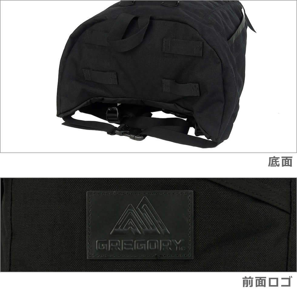 ・フロントのレザーエンボスのグレゴリーロゴがアクセント ・ジッパータブを含めオールブラックのクールな仕様 ・スマホ、財布、鍵などの小物収納に便利な前面ポケット |