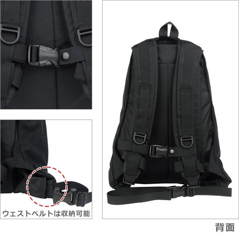・前面ポケット×1(ダブルファスナー開閉) ・メインコンパートメント(ダブルファスナー開閉/メッシュジップポケット×1(キークリップ×1)、スリーブポケット×1) ・トップにデイジーチェーンを装備 ・ボトムにトレッキングポール装着用ストラップ×1 ・長さ調節可能なショルダーハーネス(取り外し可能なチェストストラップ付き) ・収納可能なウエストベルトを装備 ・トップハンドル×1 |