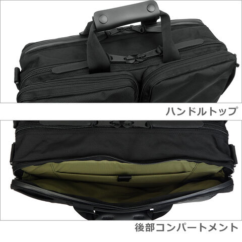 ・前面にL字型に開くジップポケットx2を装備(キーフックx1、ペンホルダーx2、オープンポケットx1、マジックテープホック付ポケットx1) ・メインコンパートメント(ホック付きポケットx1、オープンポケットx1、メッシュジップポケットx1) ・後部PC用コンパートメント(タブレット用ポケットx1) ・背面にバックパック用ストラップを収納可能。バックパック用ストラップにはチェストストラップ付き ・持ち手を纏められるカバー付き。トップハンドルもついて持ち運び楽ちん |