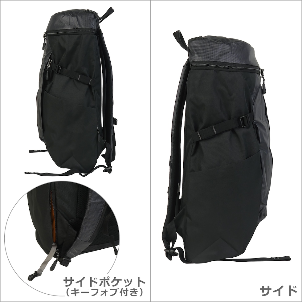 ・ジッパープルは掴みやすい専用デザイン ・メインコンパートメント(ダブルファスナー開閉/メッシュジップポケット×1、オープンポケット×1、PC収納可能なスリーブポケット×1) ・上部にジップポケット×1 ・前面片側に縦開きジップポケット×1(内部にジップメッシュポケット×1) ・両サイドボトルポケット×各1 ・背面片側にジップポケット×1(内部にキーフォブ×1) ・両サイドにコンプレッションストラップ付 ・トップハンドル、チェストストラップ付 ・バックパネルは通気性の良いメッシュ素材 ・前面センターにデイジーチェーンを装備 |