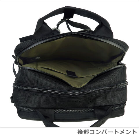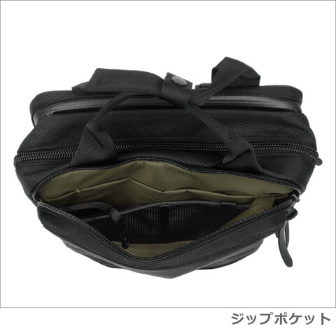 ・前面上部にジップポケット×1(オープンポケットx1、オープンメッシュポケット×2、ペンホルダー×2、キークリップ×1) ・メインコンパートメント(ダブルファスナー開閉/メッシュジップポケット×1、オープンポケット×2) ・後部コンパートメント/PC用コンパートメント(ダブルファスナー開閉(止水ファスナー)/タブレット用スリーブ×1) ・片側サイドにボトルポケット×1(アクティブシールドライニング使用/底部に水抜き機能付き) ・片側サイドの背面側にジップポケット×1 ・キャリーハンドルに取り付け可能なセットアップスリーブ付き ・長さ調節可能なショルダーハーネス(チェストストラップ付き) ・トップハンドル×2(持ち手を纏められるボタンホック付き) |