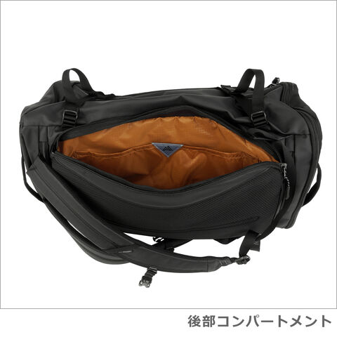 ・トップにジップポケット×1(ジップメッシュポケット×1(キーフック×1)) ・メインコンパートメント(ダブルファスナー開閉/メッシュジップポケット×1(仕切り付き)) ・フロントにデイジーチェーンを装備 ・片側サイドにボトルポケット×1 ・両サイドにコンプレッションストラップ×4 ・長さ調節可能なショルダーハーネス(チェストストラップ付き) ・トップとボトムにハンドルを装備 ・後部コンパートメント/PC専用コンパートメント(ファスナー開閉/タブレット用スリーブ×1) ・底部コンパートメント(ファスナー開閉/アクティブシールド製) |
