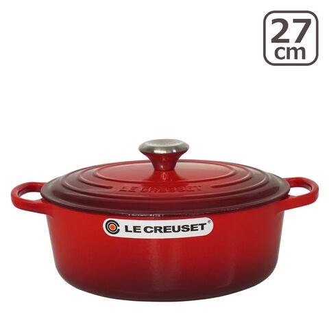 ルクルーゼ (ル・クルーゼ) SIGNATURE ココットオーバル 27cm つまみシルバー レッド【北海道・沖縄は990円加算】 lec9122si