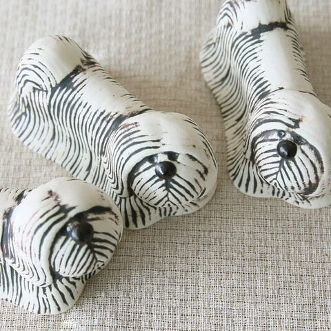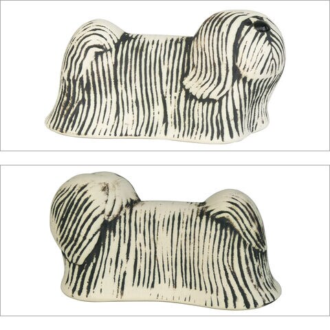 1977年〜83年、1992年〜に作られた【mini kennel】シリーズ。 硬いロングコートが自慢のスカイテリアは日本ではまだ珍しく、一見シーズーと見間違えてしまいます。長い飾り毛とつぶらな瞳の愛嬌のある可愛らしいオブジェです。 |