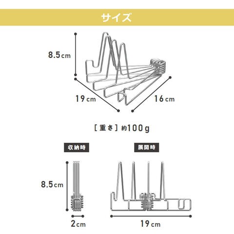 | 横幅:16cm / 高さ:8.5cm / 長さ:19cm(展開時)・2cm(収納時) |