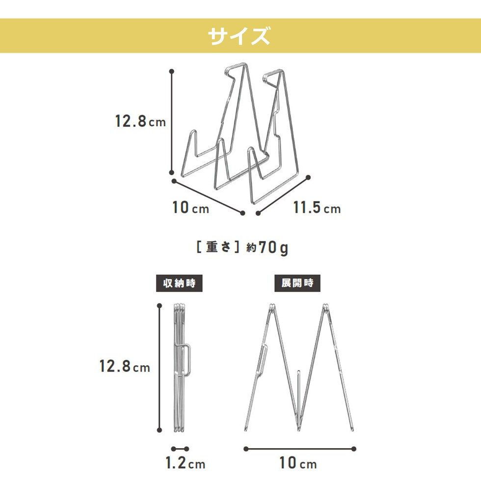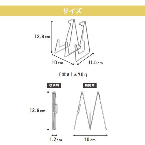 | 横幅:10cm(展開時)・1.2cm(収納時)/ 高さ:12.8cm / 長さ:11.5cm |