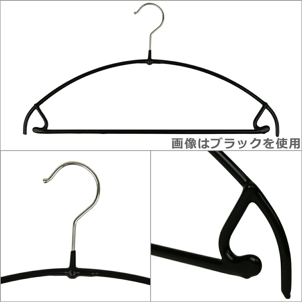 肩の出っ張りが無いシンプルなデザインのEconomic(エコノミック)シリーズ。肩先の緩やかなカーブは衣類を引っ張ることなく、生地を傷めにくいのが特徴!立体的でないフラットなフォルムは、たくさん掛けられてスッキリ収納できます♪下部のバーにはタオルやスカーフなどを掛けられて便利!お試しや新生活にピッタリな5本セット! |
