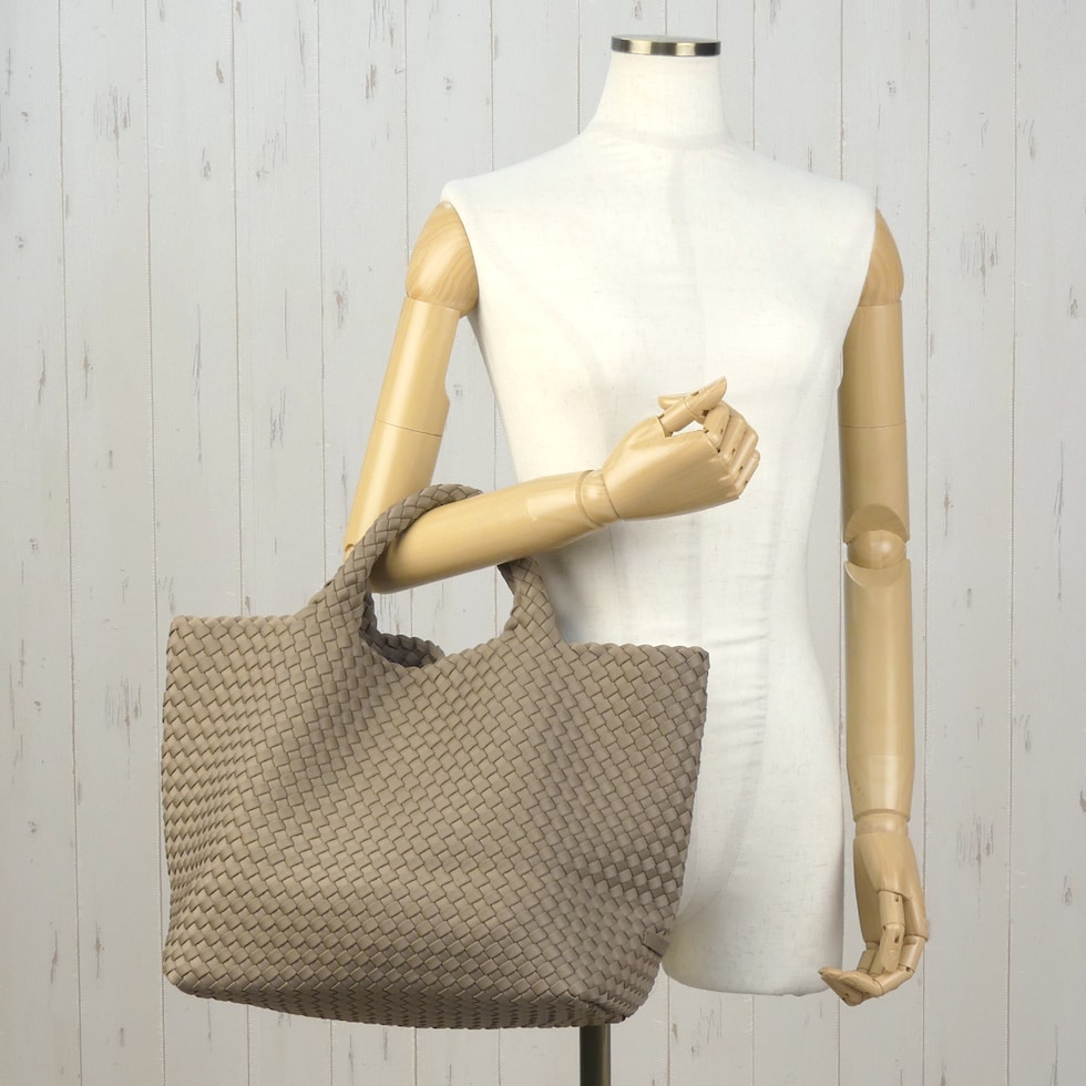 ・ナゲディを象徴する代表的なシリーズ『St. Barths Tote』 ・大き目のマチで荷物がたっぷり入るミディアムサイズ ・シーンを選ばず使えるシンプルでベーシックなデザイン ・職人により継ぎ目なく丁寧に編み込まれたデザインが特徴的 ・汚れにくく耐久性のあるネオプレン素材を使用 |