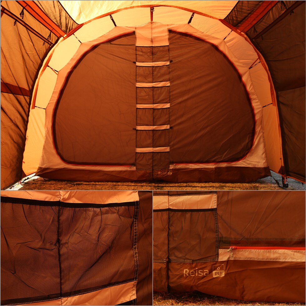 ・家族やグループでゆったり過ごせるトンネル型。(4ポール式)テント、Reisa 6 PU(レイサ6 PU) ・ツールーム構造(4人+2人)で、最大6人眠ることが出来る大型のドームテント ・4人部屋は仕切り付きなので、寝室スペースと休憩スペースに分けるなど居住性抜群 ・ロールアップ出来る窓や複数の収納ポケットなど機能性も抜群 ・フロントドアとサイドドアを大きく開放可能。フロンドアを跳ね上げてタープとしての使用が可能 ・メッシュ付き大型2重フライドア ・透明小窓付ドア(ロールアップカーテン付き) ・3-in-1システム(キャノピーポール2本付き) ・コンプレッションストラップ付きパックサック(収納袋)(パックサイズ : 35 x 70cm) |