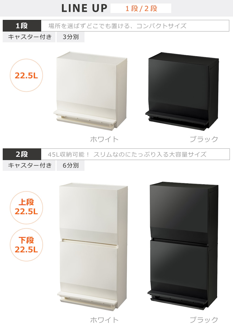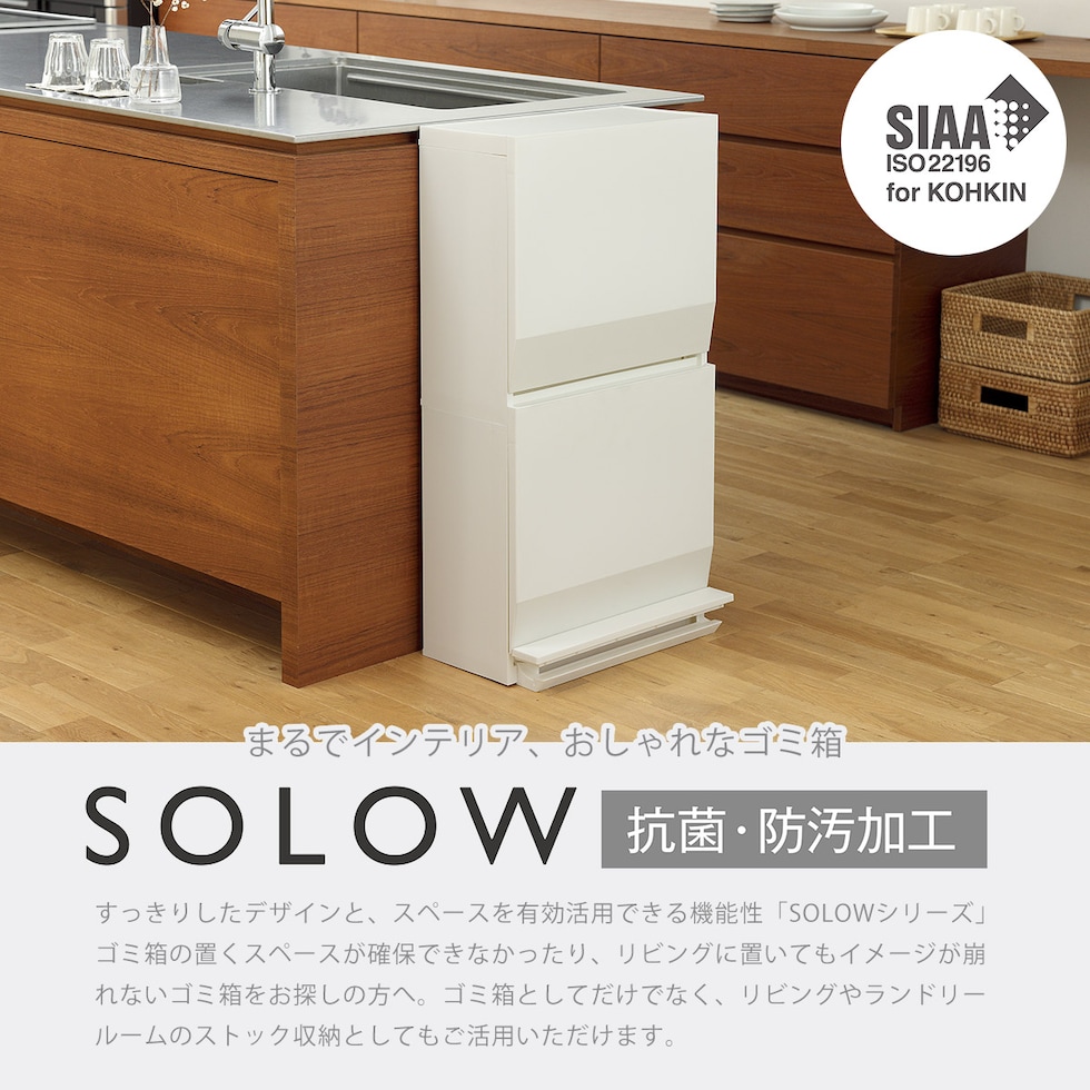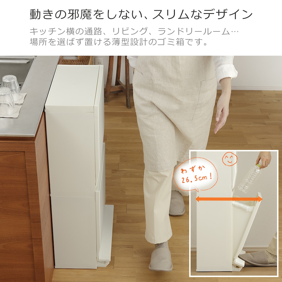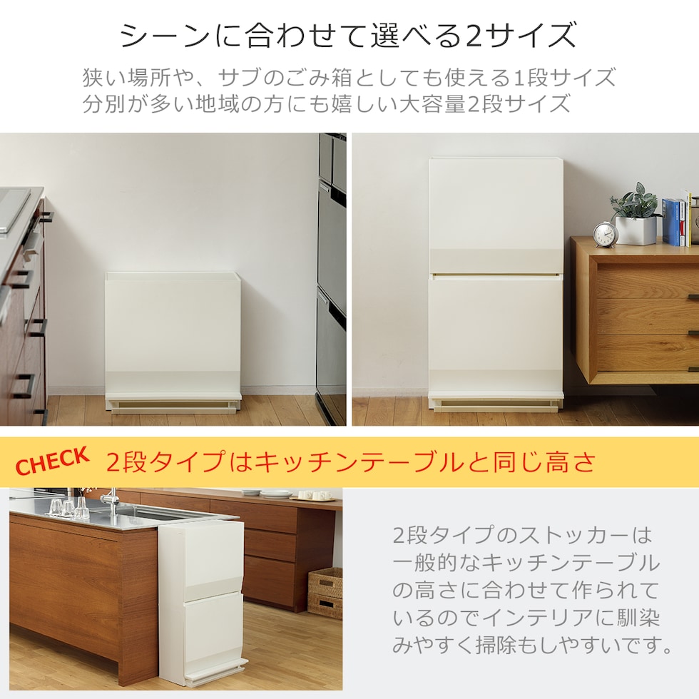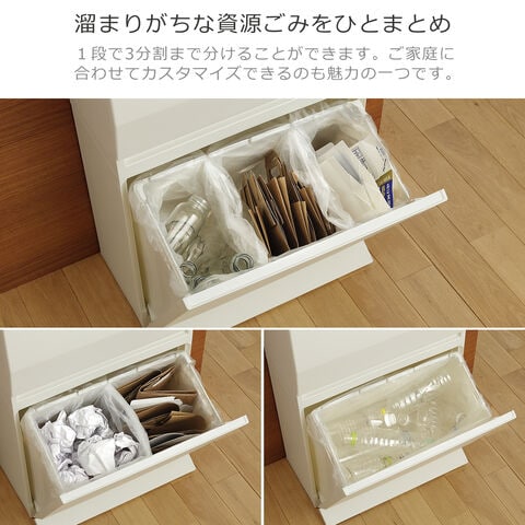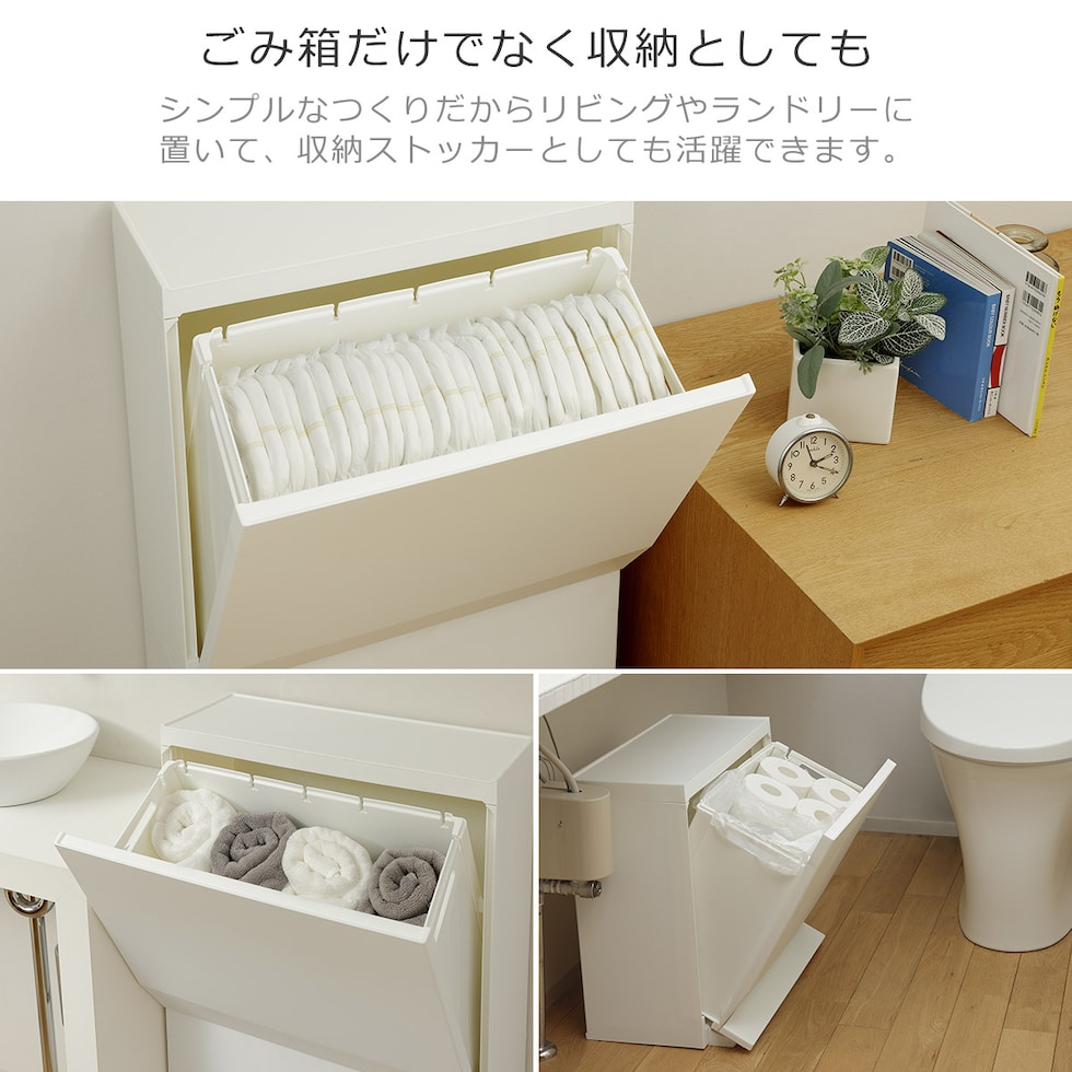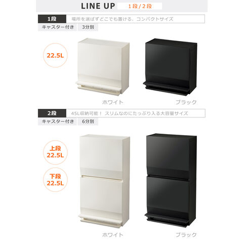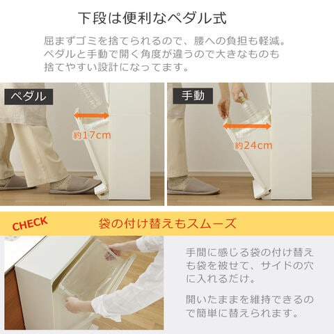 ・ゴミ箱としてはもちろん、収納ストッカーとしても使える分別ストッカー ・限られたスペースを有効活用できるスリム設計だから生活の導線の邪魔にならない ・開閉が楽なペダル式 ・抗菌、防汚加工で衛生的(SIAAマーク認証) ・仕切りを活用して、1段で最大3分別可能 ・組み立て式 |