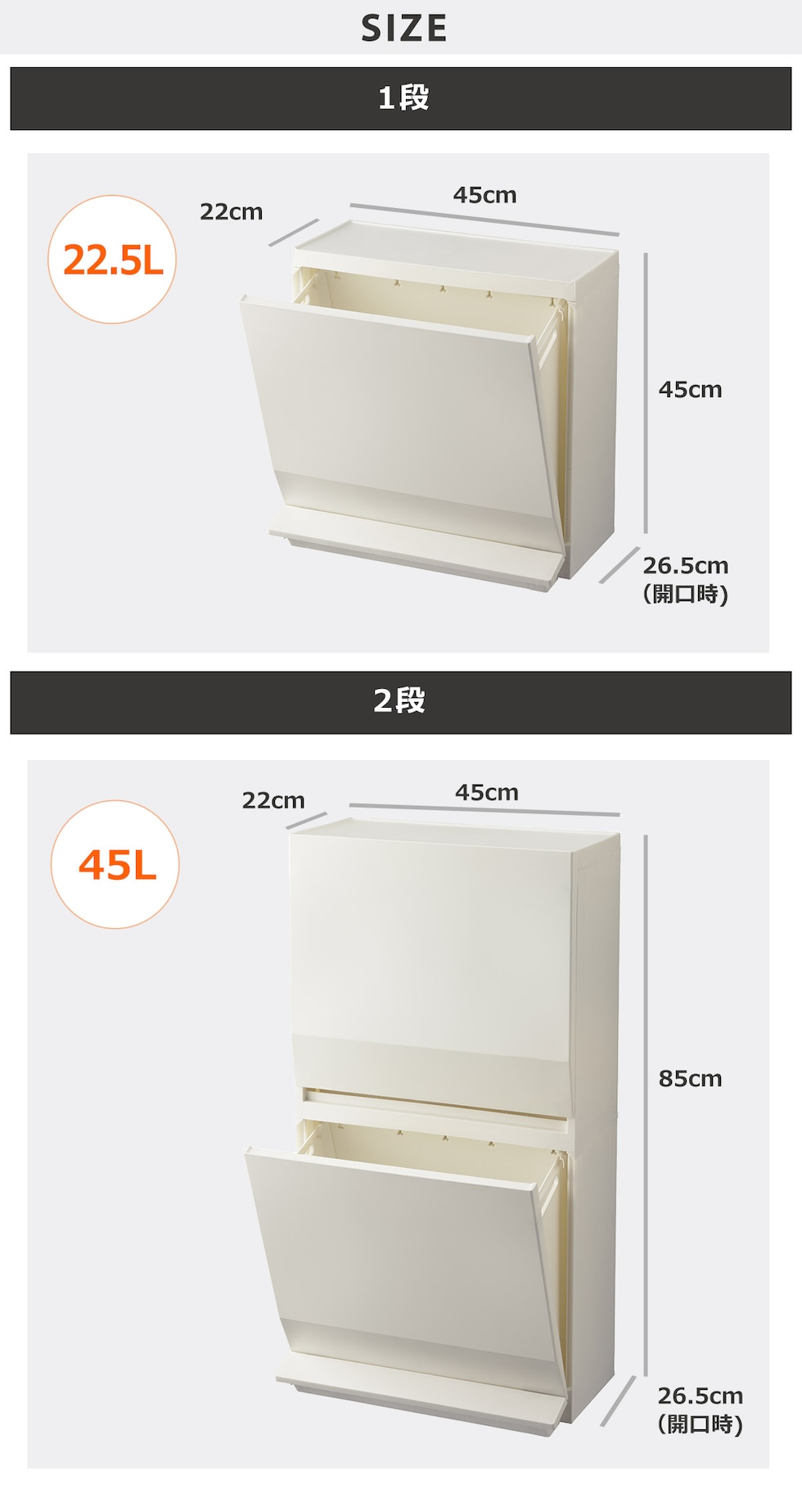 | 通路で使えるペダル分別ストッカー 2段 / 45L |