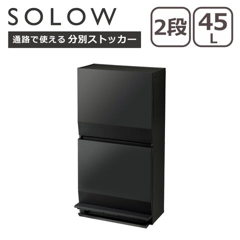 ゴミ箱 ソロウ 通路で使えるペダル分別ストッカー 2段 45L ブラック ストック収納 収納ボックス ダストボックス SOLOW【北海道・沖縄は990円加算】slw0302-bk