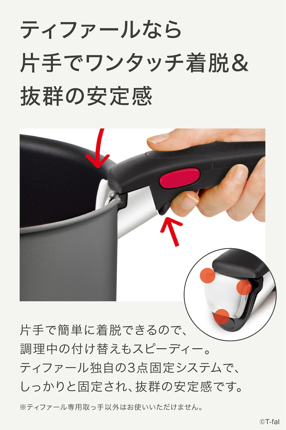 ・耐久性と熱伝導性を実現した、「使い方自由自在」の取っ手のとれるシリーズ ・丈夫なチタン・コーティングでこびりつきにくさが長持ち ・熱がムラなく伝わる最大限まで拡大したIHディスク ・調理開始のタイミングが更にわかりやすくなった新しい「お知らせマーク」 ・取扱説明書付き |