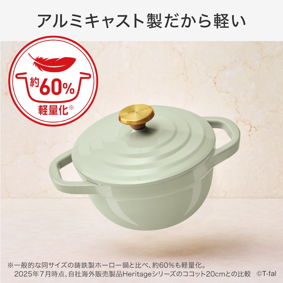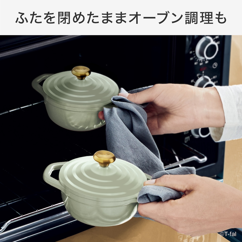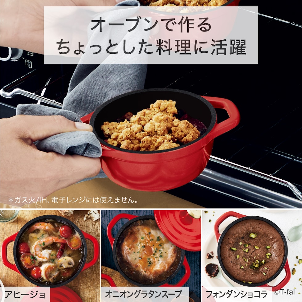 ・オーブン専用のミニココット ・ちょっとした料理やデザート作りに最適な手のひらサイズ ・じっくり煮込み、素材の味を活かした味わい深い仕上がりに ・アルミキャスト製のココットだから、一般的な鋳物鍋よりも軽量で日常使いしやすい ・本体とふたがすき間なくぴったり閉まる構造により、食材の水分や旨みを逃がさずに調理することができます ・食材から出た蒸気がお鍋の中で循環し、ふたの裏側の突起(ピコ)が均一に食材に旨味を含んだ水分を行き渡らせることで、水分や旨味を逃さず、食材の美味しさを最大限に引き出すことができます ・ふたごと一緒にオーブンに入れられるのでじっくりと加熱でき、しっかりと美味しさを引き出します ・保温性が高いので、そのまま食卓に運んでも熱々のお料理が楽しめます ・食卓を彩るカラーとデザインでテーブルコーディネートも華やかに ・こびりつきにくいコーティング ・汚れが落ちやすいフッ素樹脂加工 |