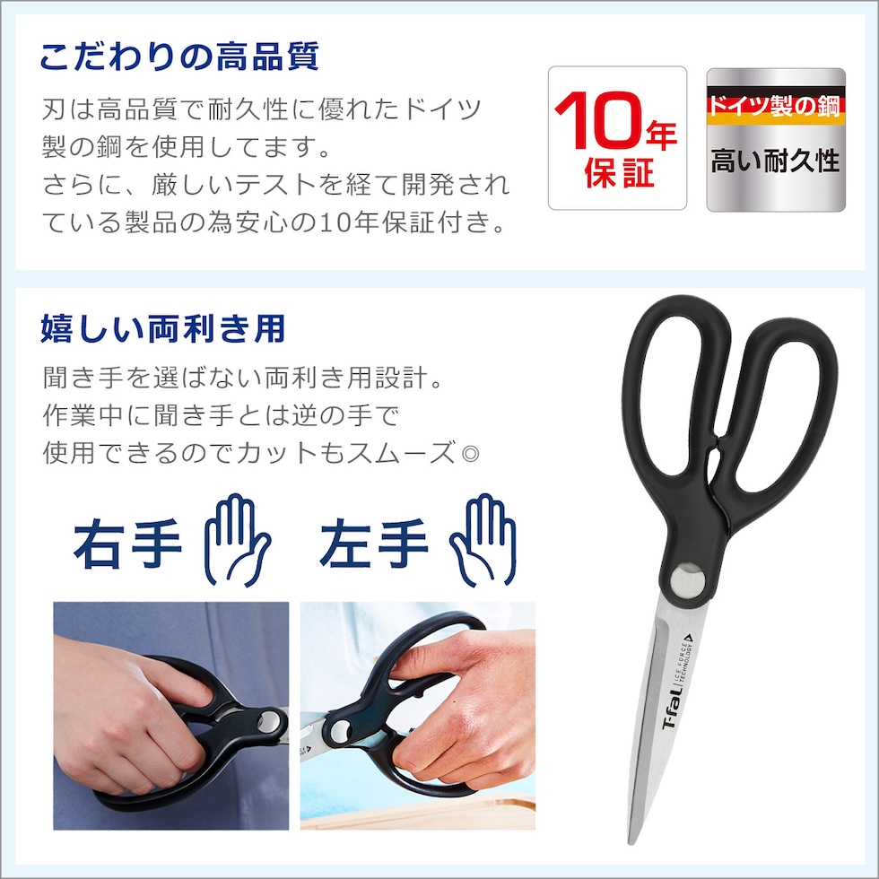 【マルチポット/フライパン 】 ・本体:ステンレス鋼(クロム18%、ニッケル8%) /(内面)チタン・インテンス ・底:ステンレス鋼(クロム18%、ニッケル8%)、アルミニウム、ステンレス鋼(クロム16%)/ IH対応3層底面 ・取っ手:フェノール樹脂、ステンレス鋼(クロム18%、ニッケル8%) ・ふた(マルチポット):強化ガラス(つまみ:フェノール樹脂) 【キッチンシザーズ】 ・刃:ステンレス鋼、ボタン:ステンレススチール、持ち手:ABS樹脂 【レードル】 ・ナイロン66、グラスファイバー15%(220℃) |