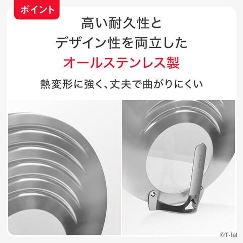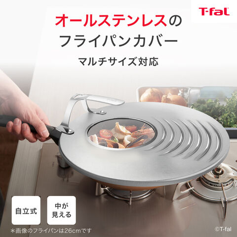 ・マルチサイズに対応のフライパンカバー ・ふた・取っ手・スタンドすべてをステンレスで統一したオールステンレス仕様 ・自立式でお料理中も置き場所に困らず、キッチンがすっきり ・ふたを開けずに調理中の食材の様子が確認できるガラス窓付き |