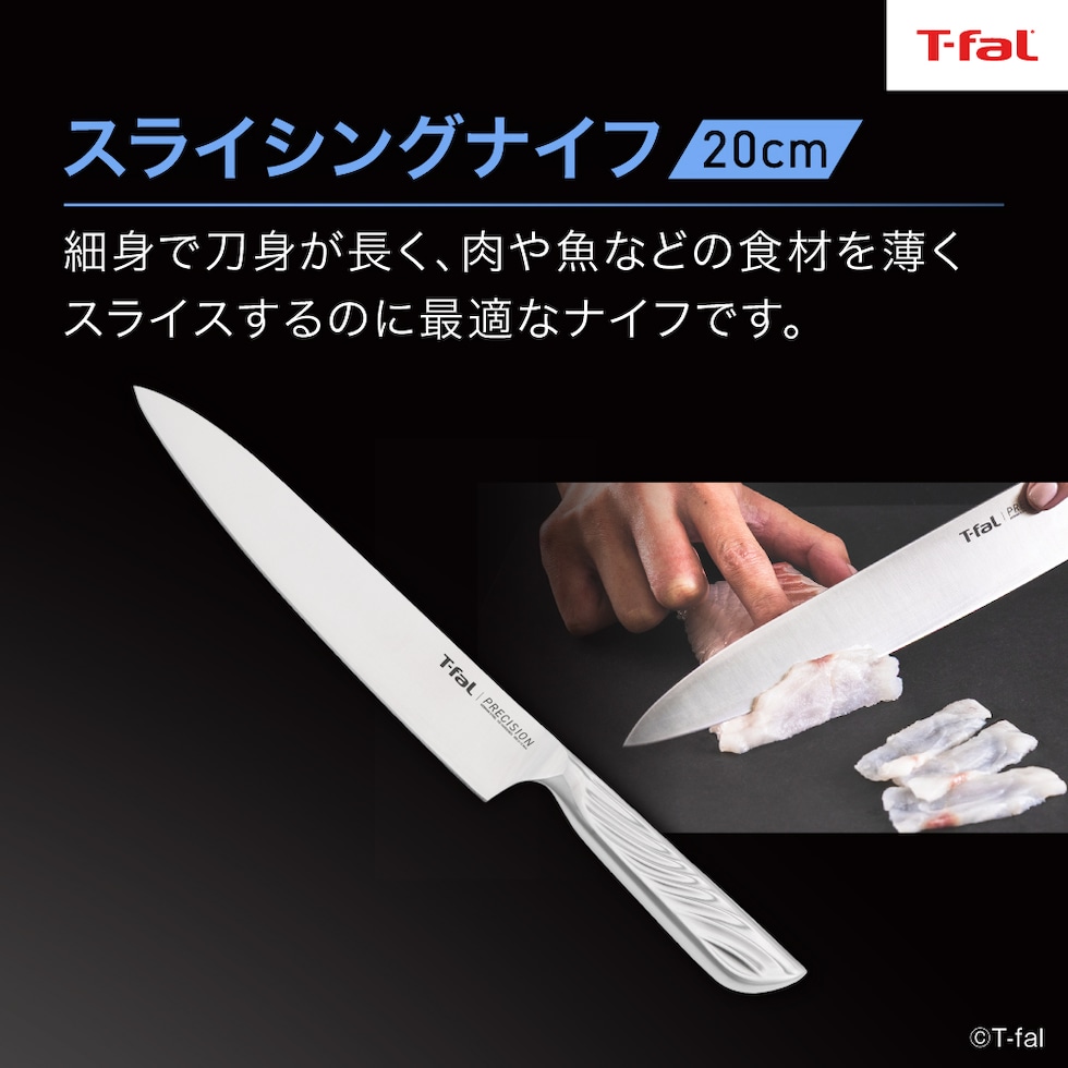 ティファール プレシジョン スライシングナイフ 20cm K27703 オールインワンステンレス 包丁 肉スライス 鋼 高耐久性 食洗機対応 T-fal 【北海道・沖縄は990円加算】 tfa9109-sl200