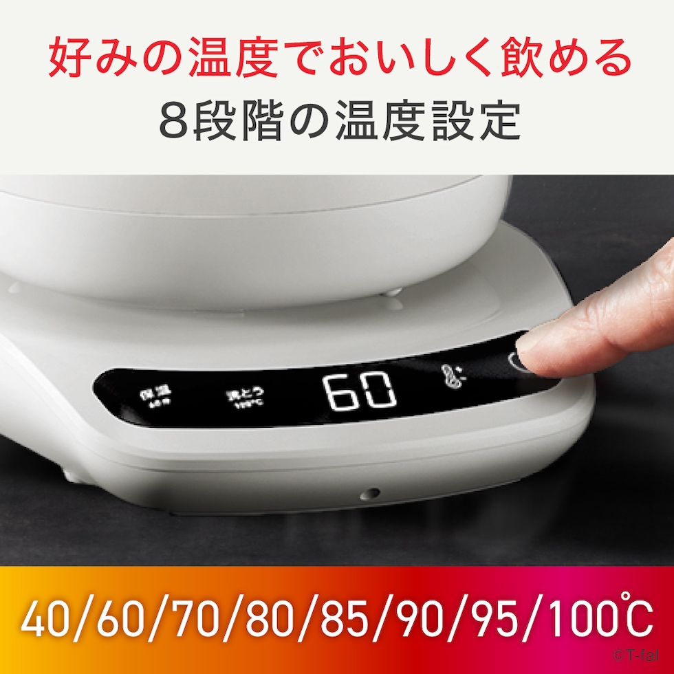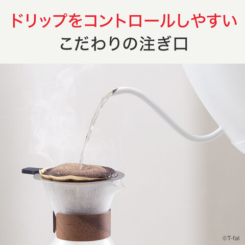 ・最適な「お湯の温度」と「注ぎ方」を簡単、手軽に実現し、本格的なおいしいコーヒーが淹れられる電気ケトル ・特徴的な細い注ぎ口は、狙った場所に注ぎたい分量のお湯を注げる形状。注いだ後の湯切れも良いのが嬉しい ・持ちやすく手にフィットするハンドル ・豆の特徴やお好みに合わせた、8段階の温度コントロール ・好きな温度で60分間の保温が可能 ・温度表示が大きくみやすいタッチパネル式電源プレート ・インテリアに馴染むスタイリッシュなステンレスボディ ・お湯が沸くと自動的にスイッチオフする安全設計 ・プロのようにドリップできる。8段階の温度コントロール ・万が一倒れてもお湯がこぼれにくいフタ ・ケトル内部が空、または水が少量の状態でスイッチを入れても、自動的にオフになる空焚き防止機能 |