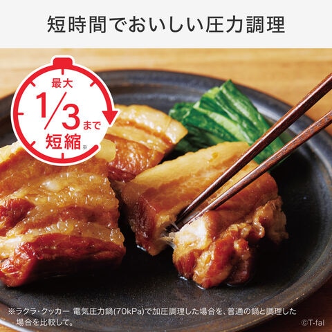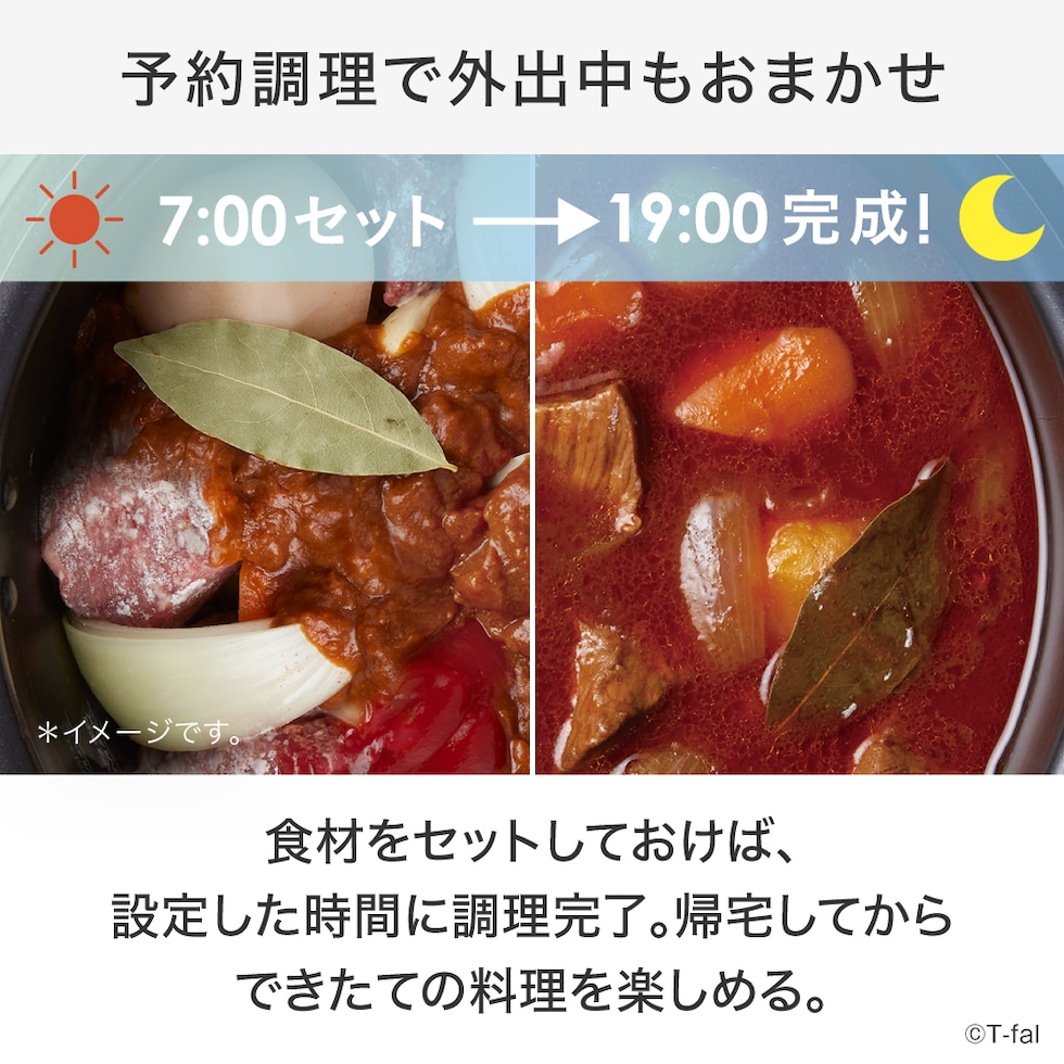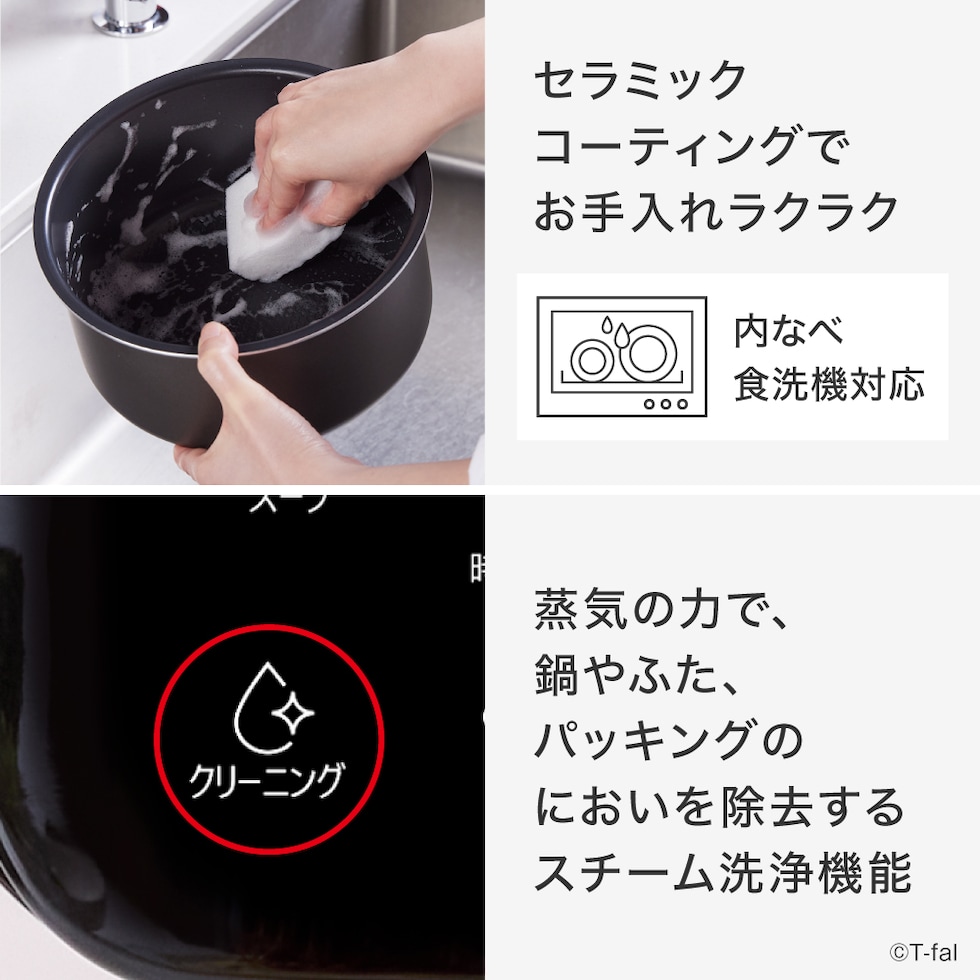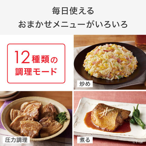 ・食材を入れて、調理モードを選んで、ボタンを押すだけのかんたん3ステップ ・おいしさも手軽さもこれ1台でOK!毎日の食事の準備もラクラク! ・時短の圧力調理6モード+普段の料理に使いやすい通常調理6モードを搭載 ・「煮る」「ゆでる」でお手軽調理、「煮つめ仕上げ」でこだわりのお料理仕上げに ・角度が付いたことで見やすさと操作性がアップしたパネル ・ハンドル上のボタンをワンプッシュするだけの、ワンプッシュ圧力排出機能 ・2〜4人分の調理が可能 ・設置しやすいコンパクト設計 ・予約開始後すぐに調理を行い、最適な温度を保ちながら最後に仕上げ加熱を行う「スマート予約調理 プログラム」搭載 ※最大12時間の予約調理が可能(圧力調理のみ対応) ※スマート予約調理は全てのレシピが対象ではありません ・調理後は最大12時間の自動保温 ・鍋のにおいも除去できるスチーム洗浄機能 ・食洗器対応のセラミックコーティング付きの内なべで調理後のお手入れも簡単 |