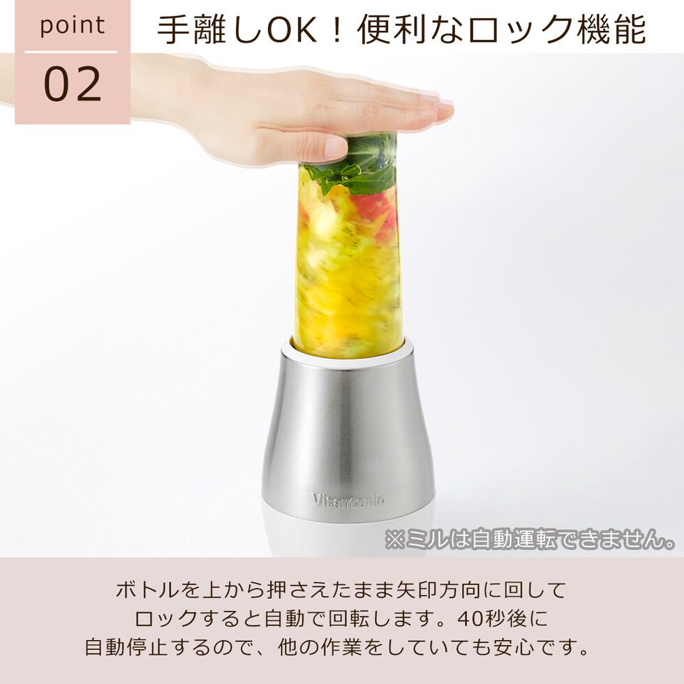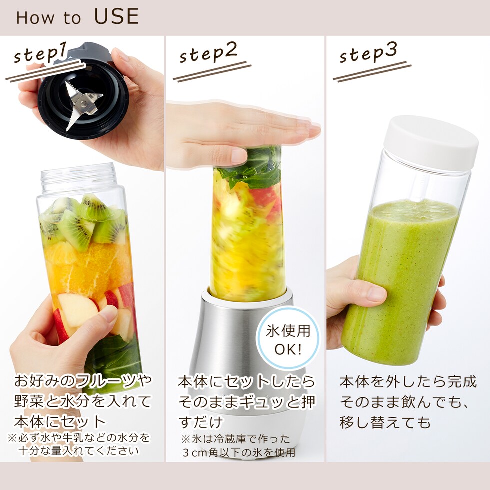 ・シェアでも十分な容量500ml ・ウェット&ドライで使える2WAYミル付き ・3STEPでかんたんスピーディ ・氷の使用OK(※3cm角以下の氷を使用してください) ・キャップを使えば、持ち運びや保存にも便利 |