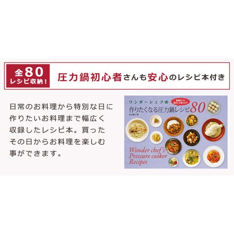 ・超高圧と高圧の切り替えが可能な両手圧力鍋 ・本格的なお料理がスピーディに調理でき、省エネにも ・モダン&スタイリッシュなデザインだから、調理後はそのままテーブルへ ・フタの開閉は、プッシュボタンを押すだけで初心者でも簡単 ・「超高圧」 と「高圧 」と「圧力排出」が上部のスイッチでカンタンに切り替え ・熱伝導の良いアルミを丈夫なステンレスで挟み込んだ底三層仕様で、お鍋の底がこげつきにくい ・圧力鍋で蒸しもの調理が出来る「蒸しす」付属 ・全品加圧検査を大阪本社工場で行ってから出荷 |