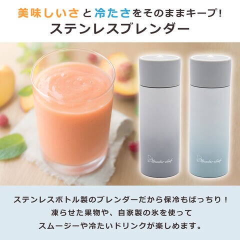ワンダーシェフ ステンレス ブレンダー グレー JEBA25(AG) 保冷 スムージー USB充電式 コードレス 真空ステンレスボトル Wonder chef 【北海道・沖縄は990円加算】wcf1003-c2