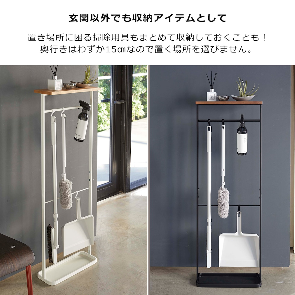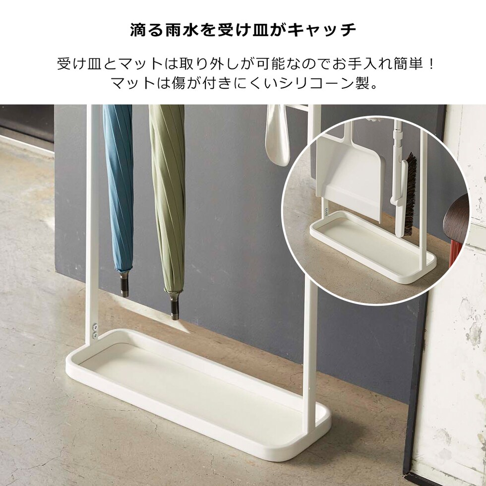 ・傘を引っ掛けて収納出来る天板付きアンブレラスタンド ・天板付きだから、鍵や時計などの玄関先の小物置きとしても ・付属のフック(3個付き)で折り畳み傘や靴ベラなどもまとめて収納可能 ・傘から落ちる水滴は受け皿でキャッチ。シリコーンマットは取外せるからお手入れ簡単 ・掃除用品などをまとめて収納するのにも便利 |