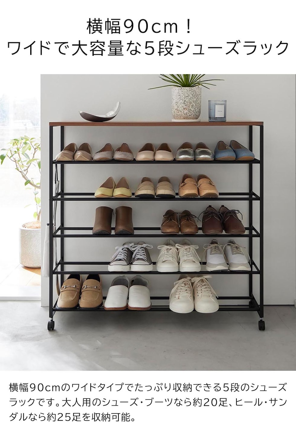天板付きシューズラック タワー 5段 キャスター付 W90
