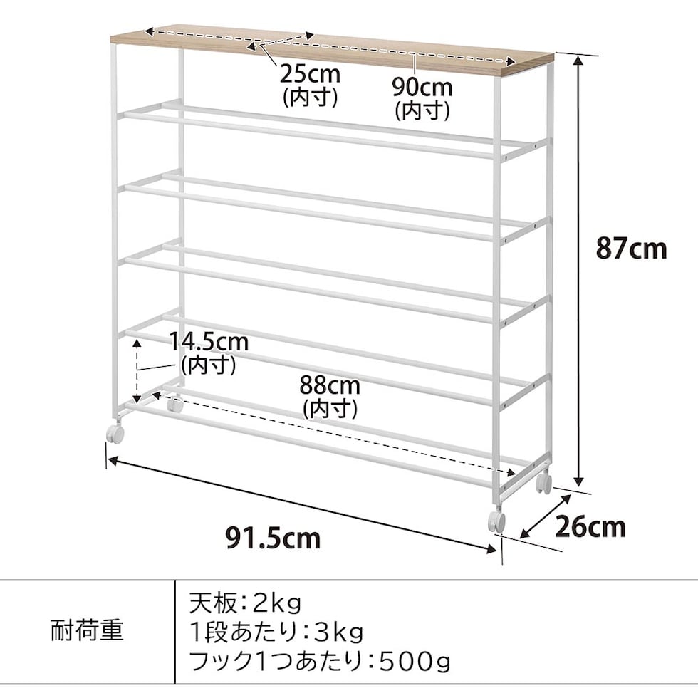 山崎実業 tower タワー 天板付きシューズラック タワー 5段 キャスター付 W90 ホワイト 1465 yamazaki 公式 オンラインショップ 下駄箱【北海道・沖縄は990円加算】 yaa2111-wh
