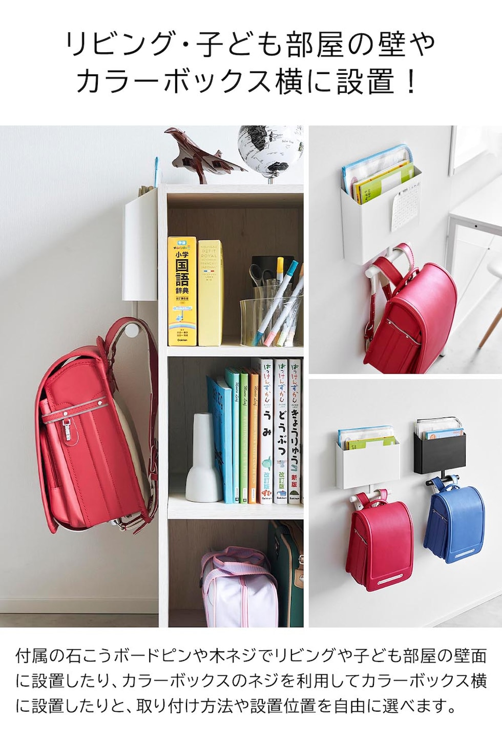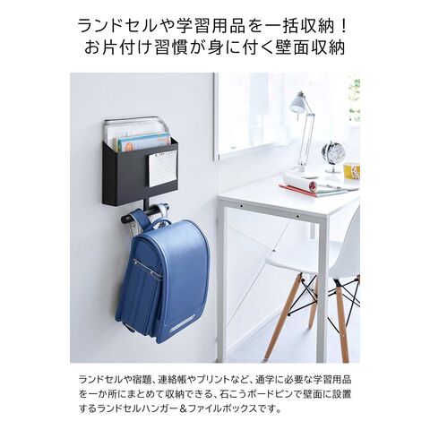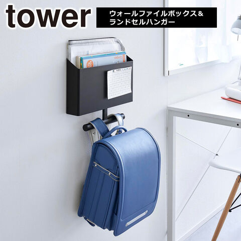 山崎実業 tower ウォールファイルボックス&ランドセルハンガー タワー 石こうボード壁対応 1866 ブラック ランドセルラック ウォールポケット マグネットボード 公式 オンラインショップ yamazaki 【北海道・沖縄は990円加算】yaa3124-bk