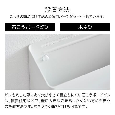 ■取り付け可能な壁 石こうボードピン使用時:壁紙・布壁紙・ビニール壁紙貼りなどの石こうボード・薄ベニヤ 木ネジ使用時:柱・板壁(厚さ1cm以上)・プリント合板(裏側に水平にサンがある場所)・裏側に下地材(間柱)が入っている壁・木枠(厚さ2cm以上) |