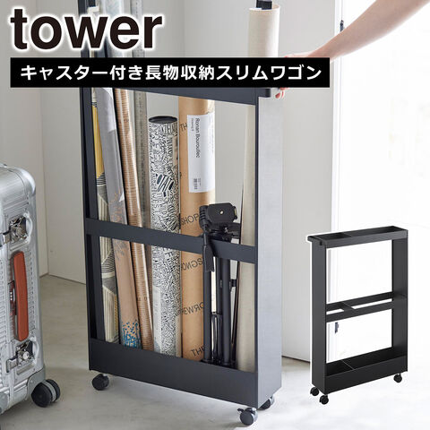 山崎実業 tower タワー キャスター付き長物収納スリムワゴン ブラック 1714 キャスター ワゴン クローゼット 収納 公式 オンラインショップ yamazaki 【北海道・沖縄は990円加算】yaa3127-bk
