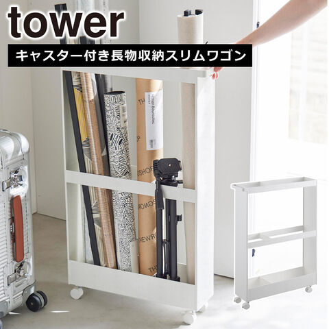山崎実業 tower タワー キャスター付き長物収納スリムワゴン ホワイト 1713 キャスター ワゴン クローゼット 収納 公式 オンラインショップ yamazaki 【北海道・沖縄は990円加算】yaa3127-wh