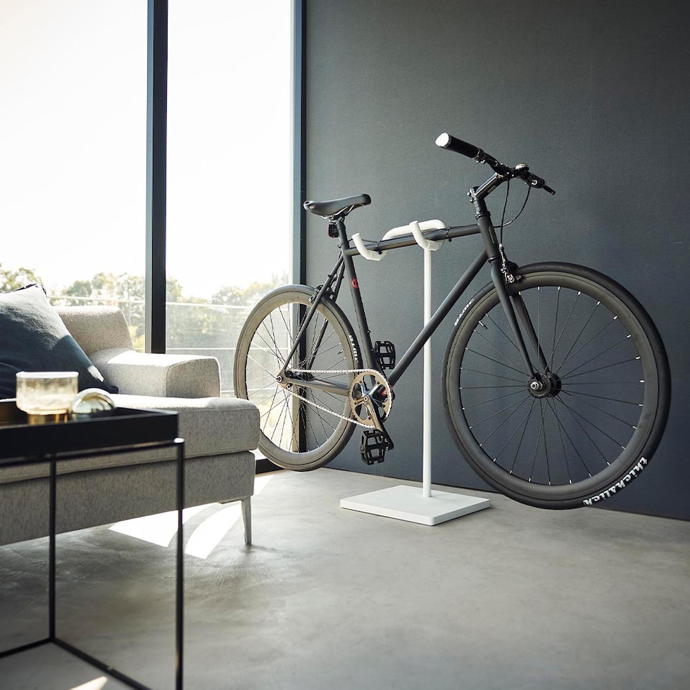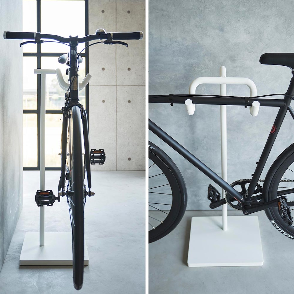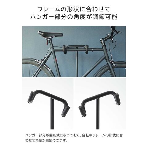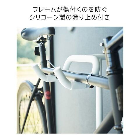 ロードバイクやクロスバイクなどのスポーツ自転車を、室内に収納できるスタンドです。 リビングや玄関に置いてもスマートに収まり、お気に入りの自転車をディスプレイすることができます。 ハンガーが回転し、自転車フレームの形状に合わせて角度を調節できるので、安定した収納が可能です。 また、自転車を載せる設置面にはシリコーン製の滑り止めが付いており、愛車のフレームが傷付きにくい仕様となっています。