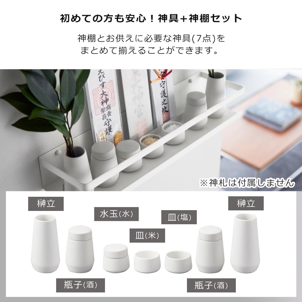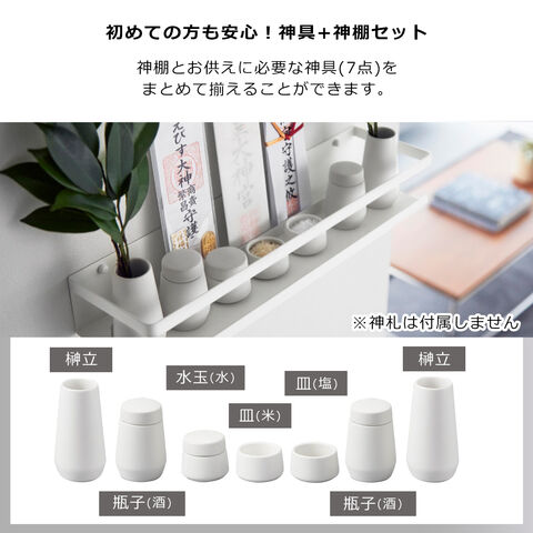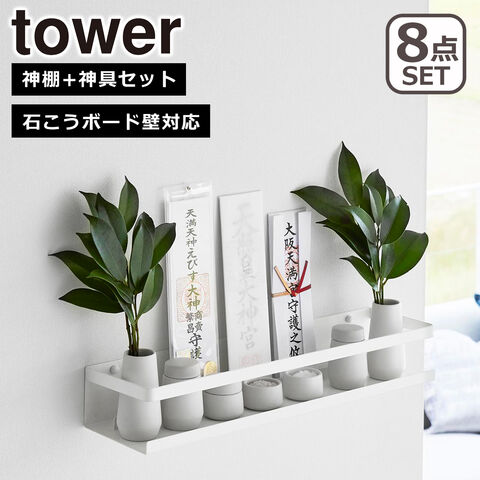 山崎実業 tower タワー 石こうボード壁対応神棚 神具セット ホワイト 3655 榊立て 瓶子 水玉 皿 お札立て お神札 破魔矢 yamazaki 公式 オンラインショップ 【北海道・沖縄は990円加算】 yaa3140-wh
