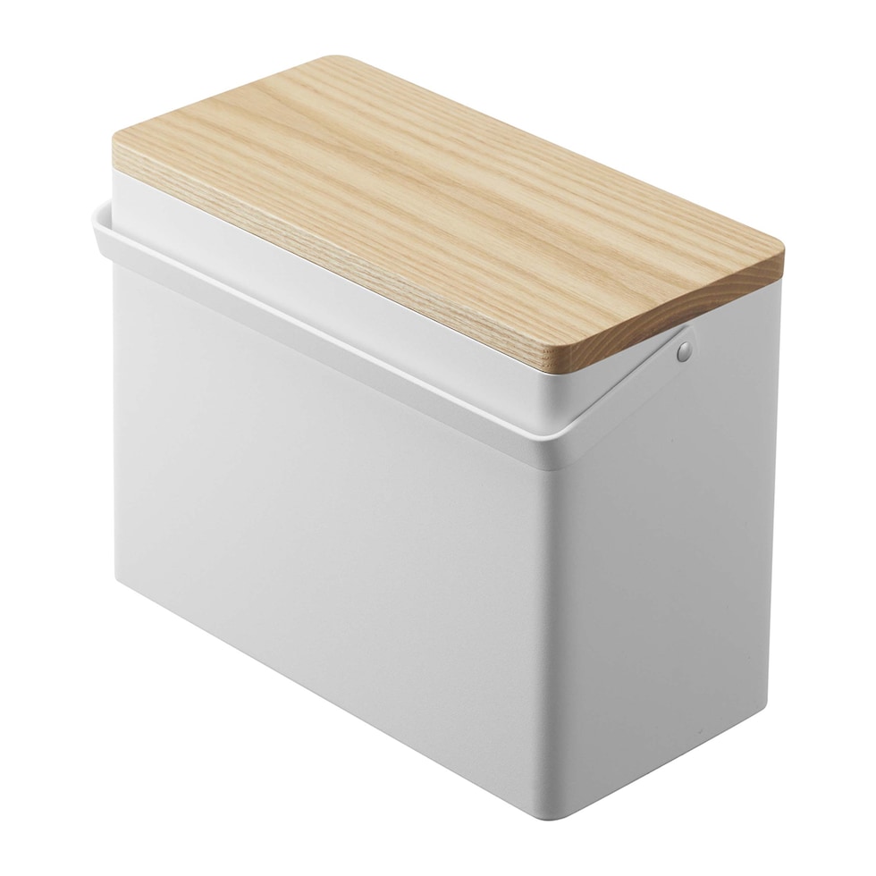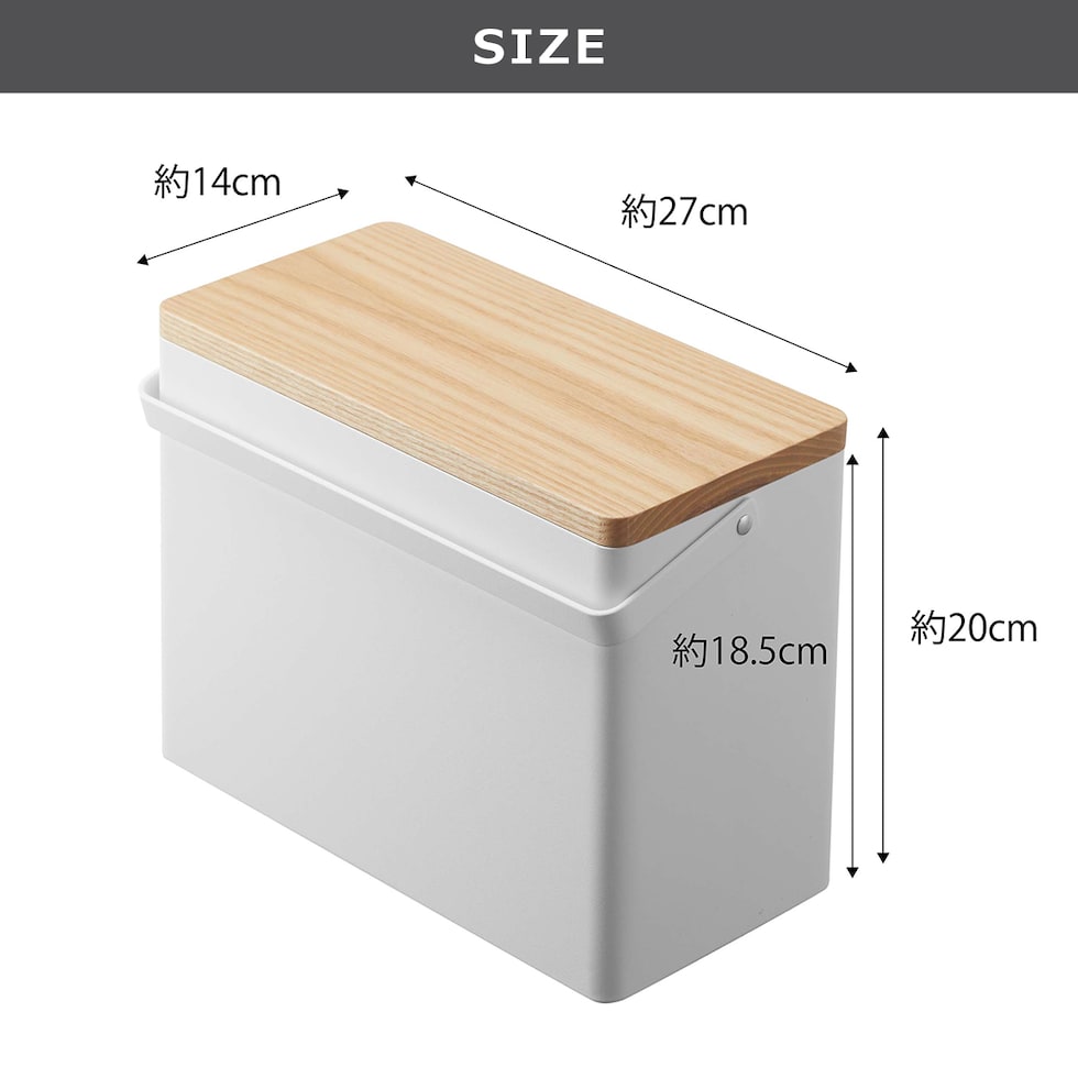 | 容器:スチール(粉体塗装)/ 蓋:天然木(ラッカー塗装)/ トレー:ABS樹脂 |