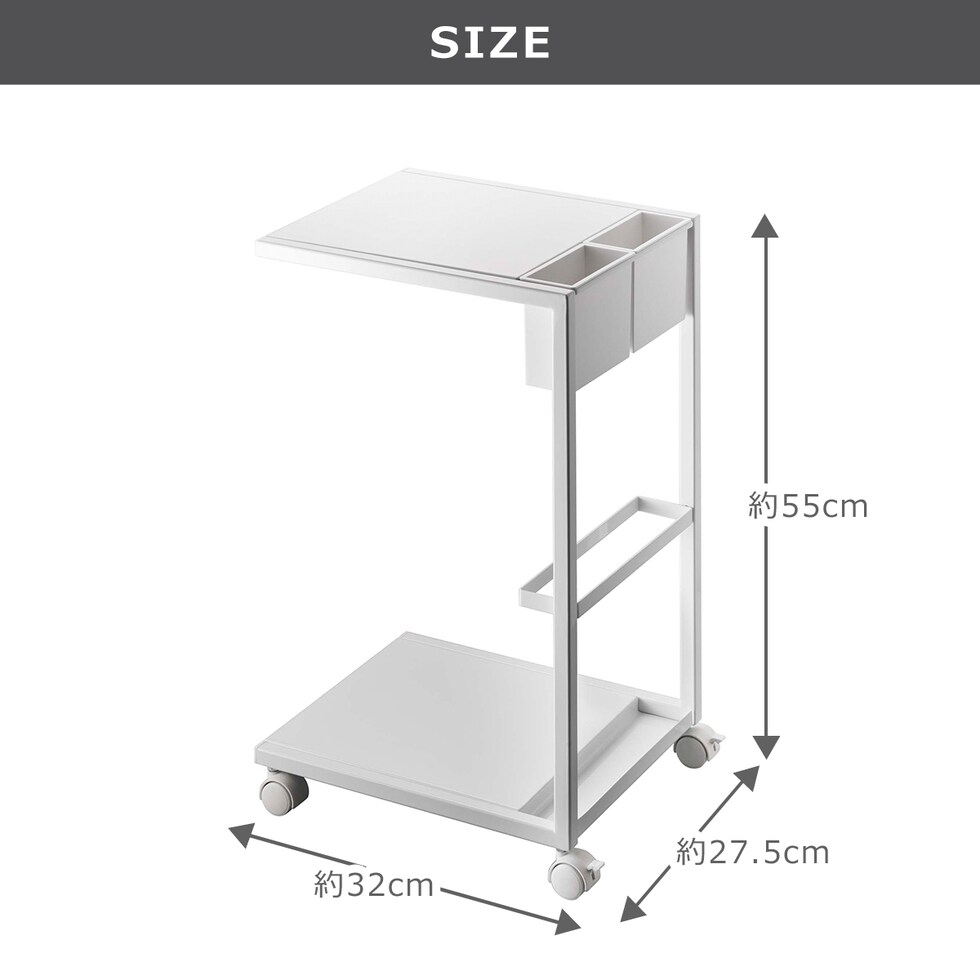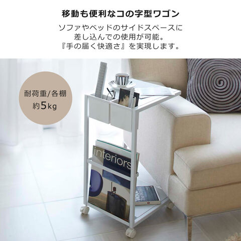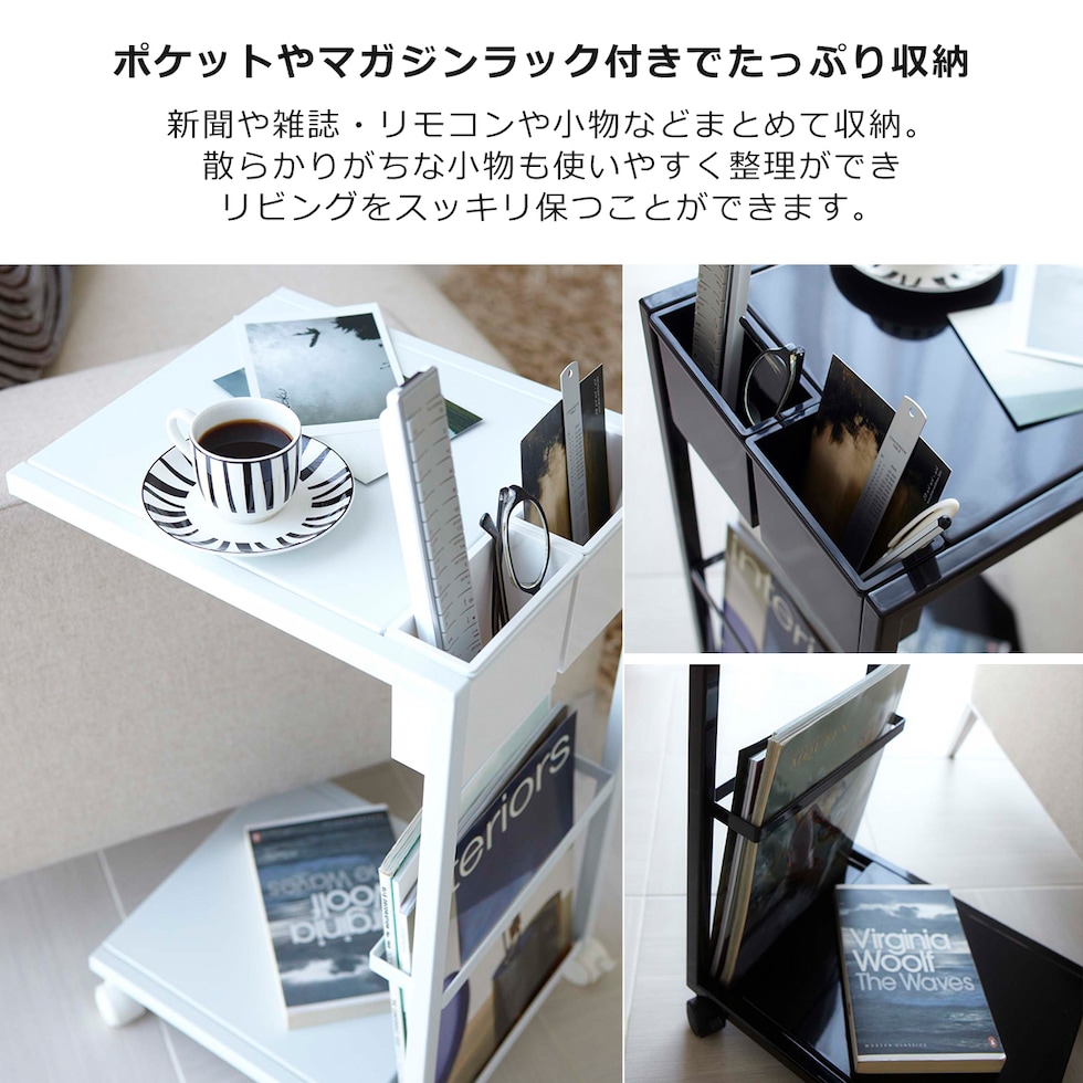 ・ベッドやソファのサイドに便利なテーブルワゴン ・雑誌や新聞、リモコン等の置き場所に困らない、サイドポケット&マガジンラック付 ・キャスターが付いているので移動も楽ちん! ・ソファに差し込んで使うこともできます |