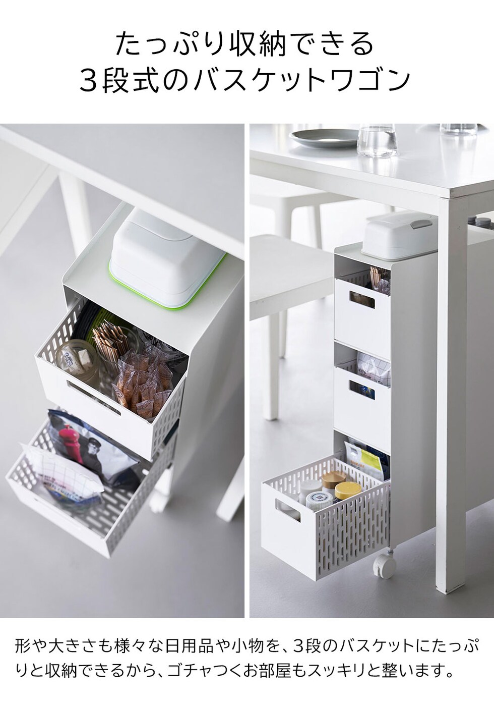 | 収納バスケットワゴン タワー 3段 |